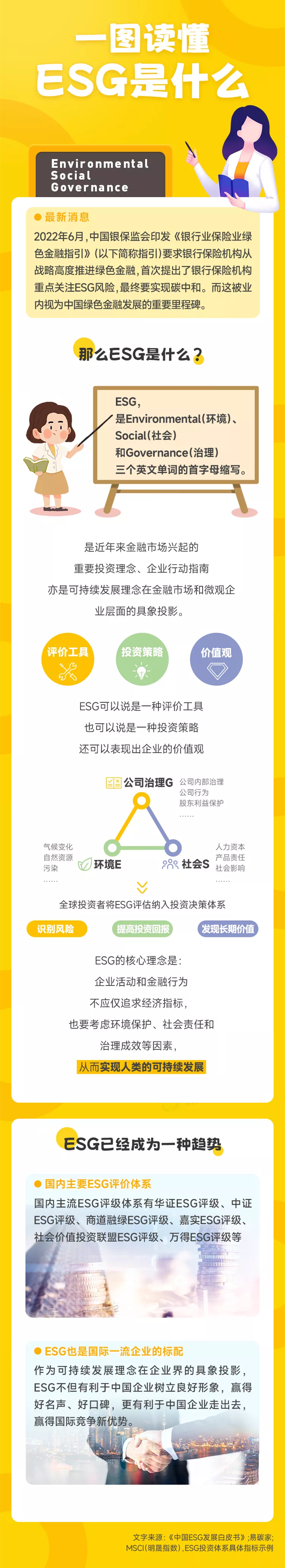 ESG是英文Environmental(環(huán)境貢獻)、Social(社會貢獻)和Governance(公司治理)的縮寫,是從公司層面專注企業(yè)非財務(wù)效益的評價標準。從投資角度,ESG的標準可以使得投資者通過觀測企業(yè)公布的ESG信息和成績,來評估投資標的(企業(yè))在促進可持續(xù)發(fā)展、履行社會責任等方面的效益。