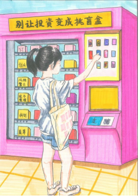 點評:作品將投資理財與時下流行的盲盒進(jìn)行對比,理性投資理念躍然紙上。